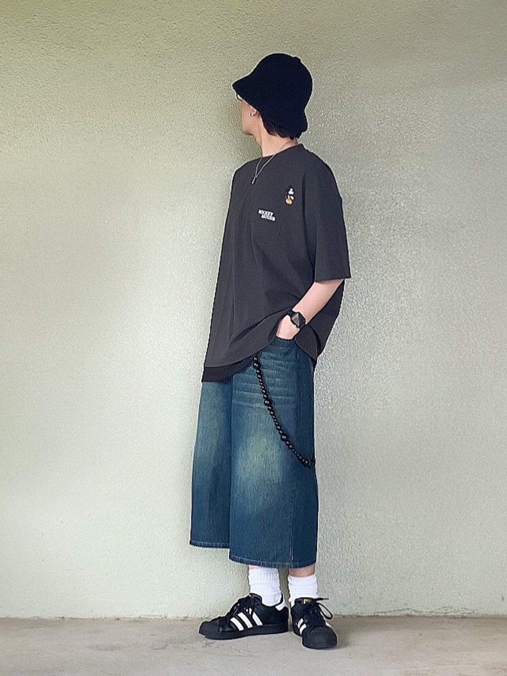 サマルのTシャツ/カットソー「2026SS Disney/ディズニー オーバーサイズ ミッキーワンポイント刺繍 ポケット付半袖Tシャツ レディース メンズ」を使ったコーディネート