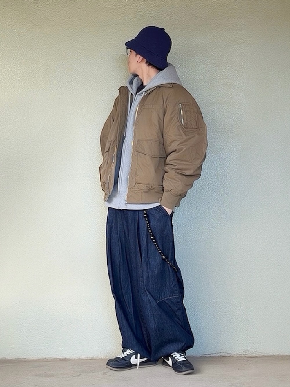 防寒コーディネート🙋♂️ カーキ×ネイビー🎵