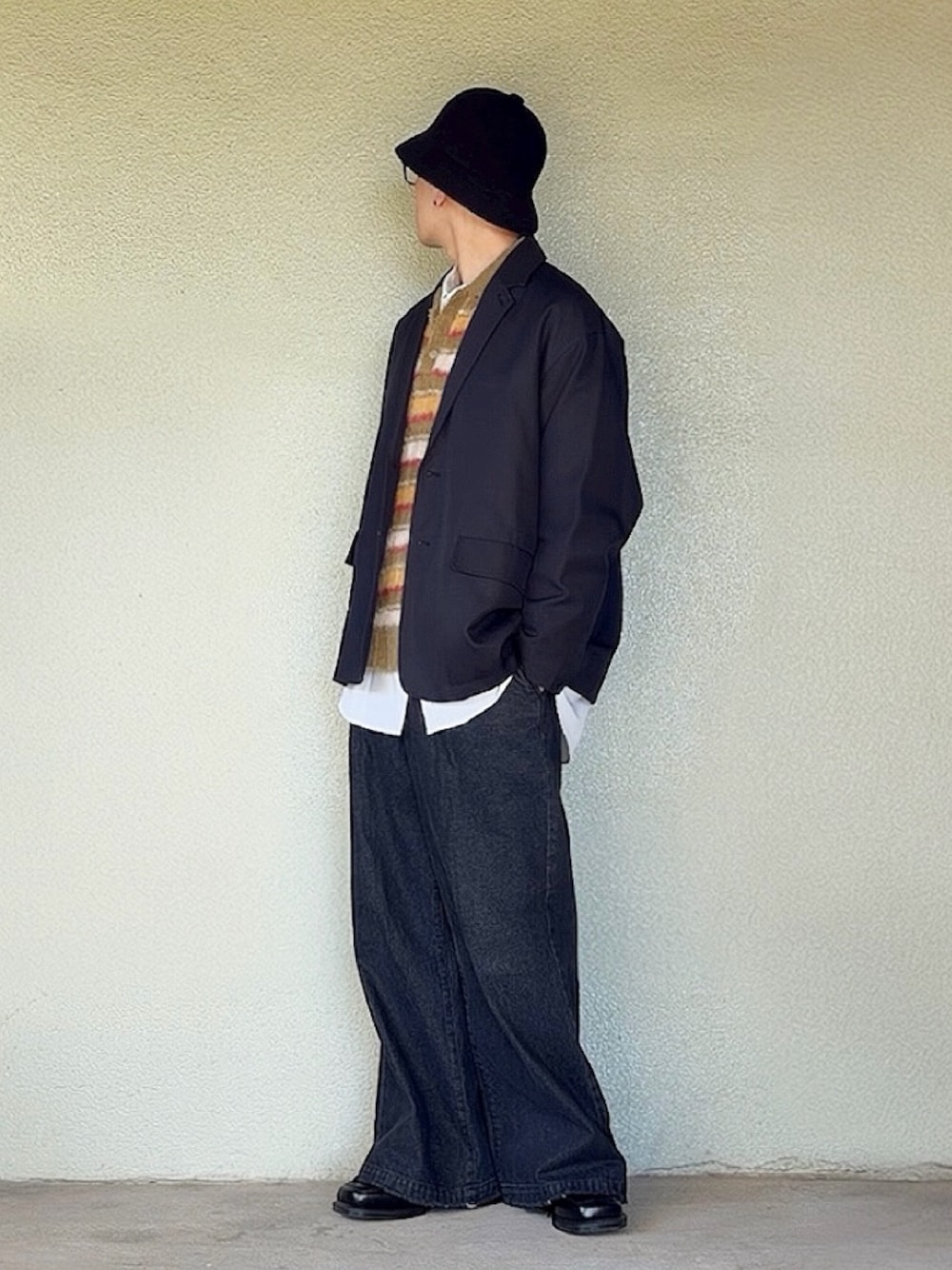 テーラードジャケットコーディネート🙋♂️ インナーはニット🧶(寒さ対策)
