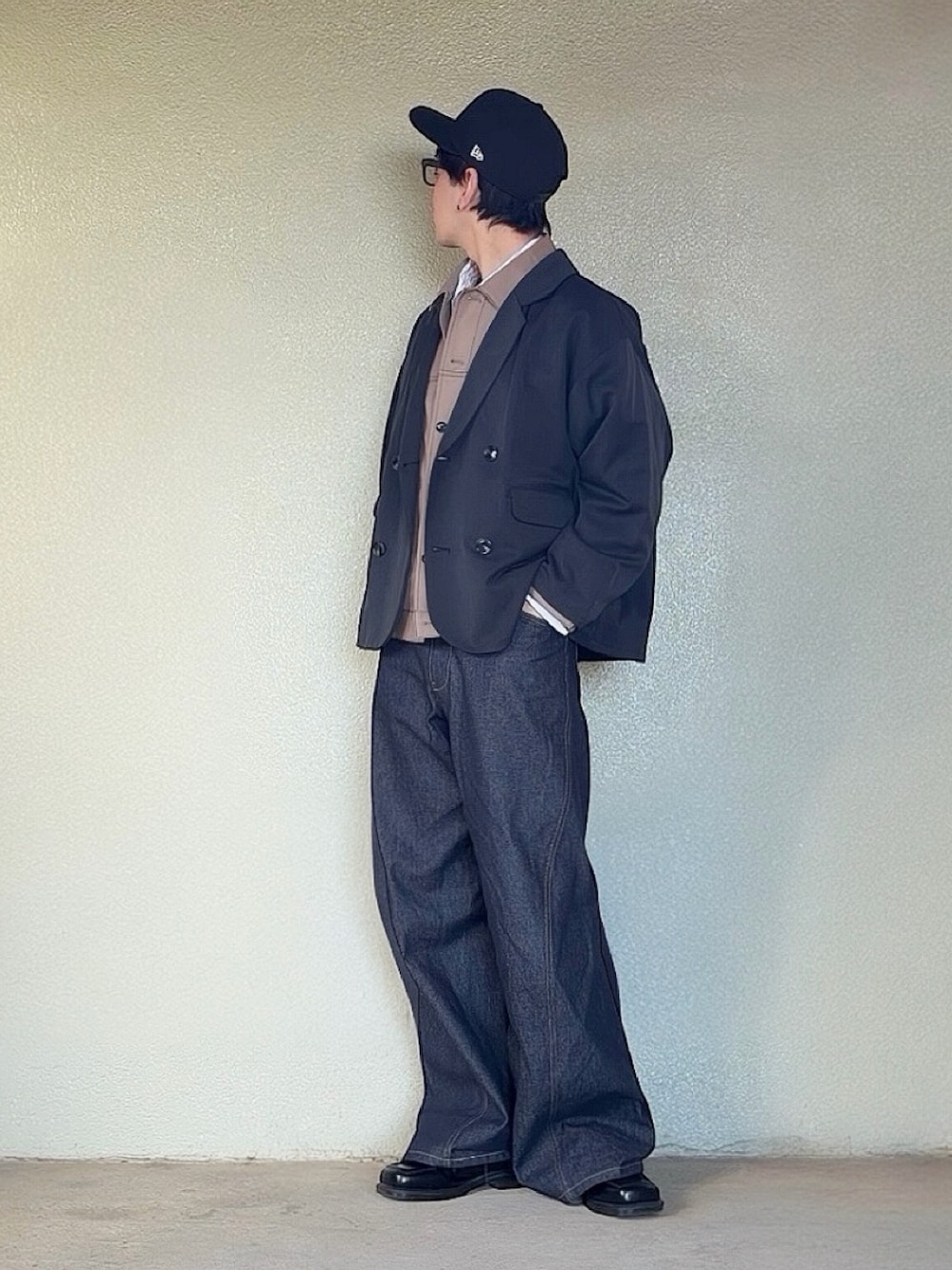 レイヤードコーディネート🙋♂️ ライトアウターの上にテーラードジャケット✨