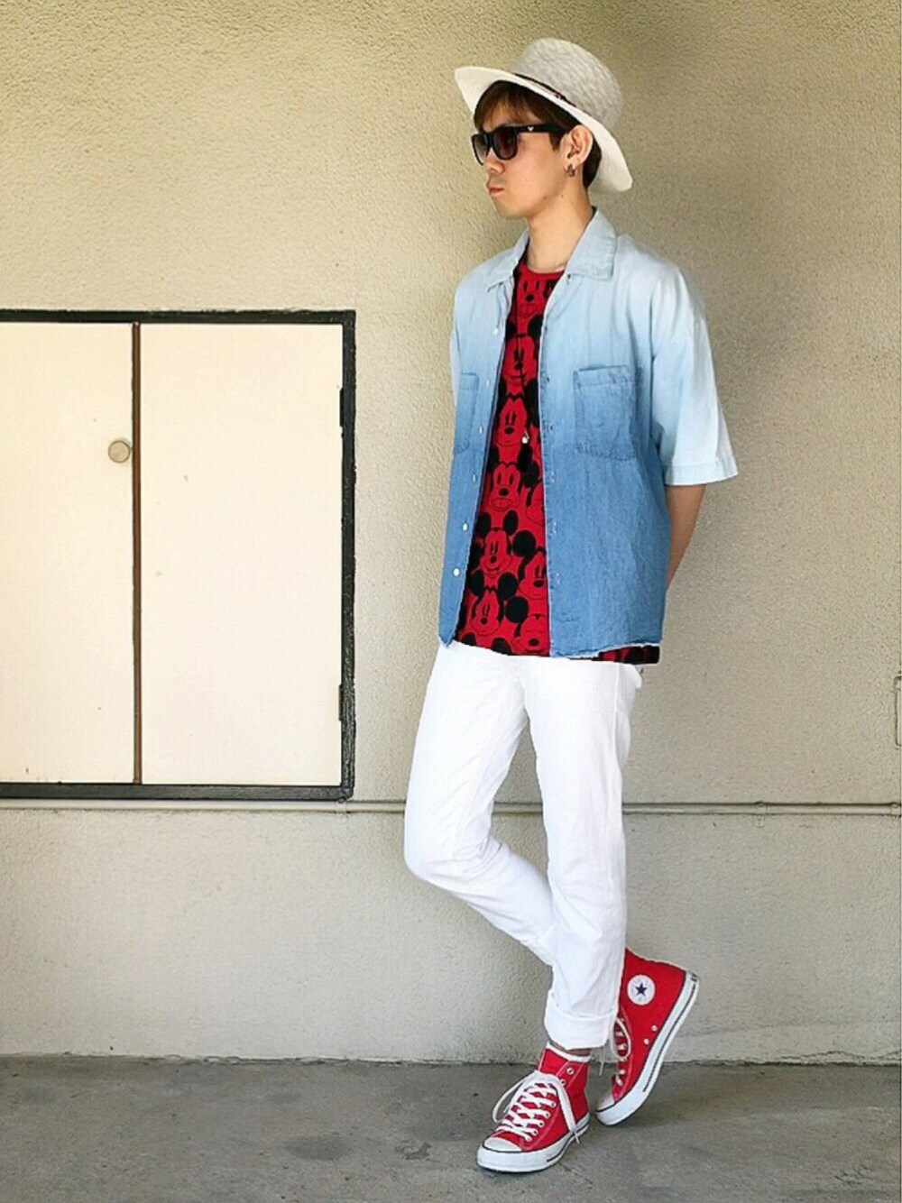 2016/09/05(月)☀️今日のコーデ こんばんは😆✋ 見に来てくれて、どうもありがとうございます〜🎵 今日は2個目アップ〜🙋 サマルです😆✌️ 暑くって、撮り溜めしといた夏コーデをお昼にアップさせていただきました〜😆✋ こちらが今日のコーデです❗️ 赤コンをメインに、最近履いてなかった白スキニー‼️ 赤合わせでミッキーTee✨ Teeだけじゃ物足りないので、ビッグシルエットのデニムシャツを羽織りましたー❗️ ツバ広ハットで完成〜👍✨ コーデはこんな感じです〜☝️ もーすぐ通算300コーデになっちゃう〜‼️😳 あっという間😂 これからもどーぞよろしくお願いします🙇 ☝️まだなってないのに〜😂(笑) 今日はこんなところで〜😆✌️ でわ👋
