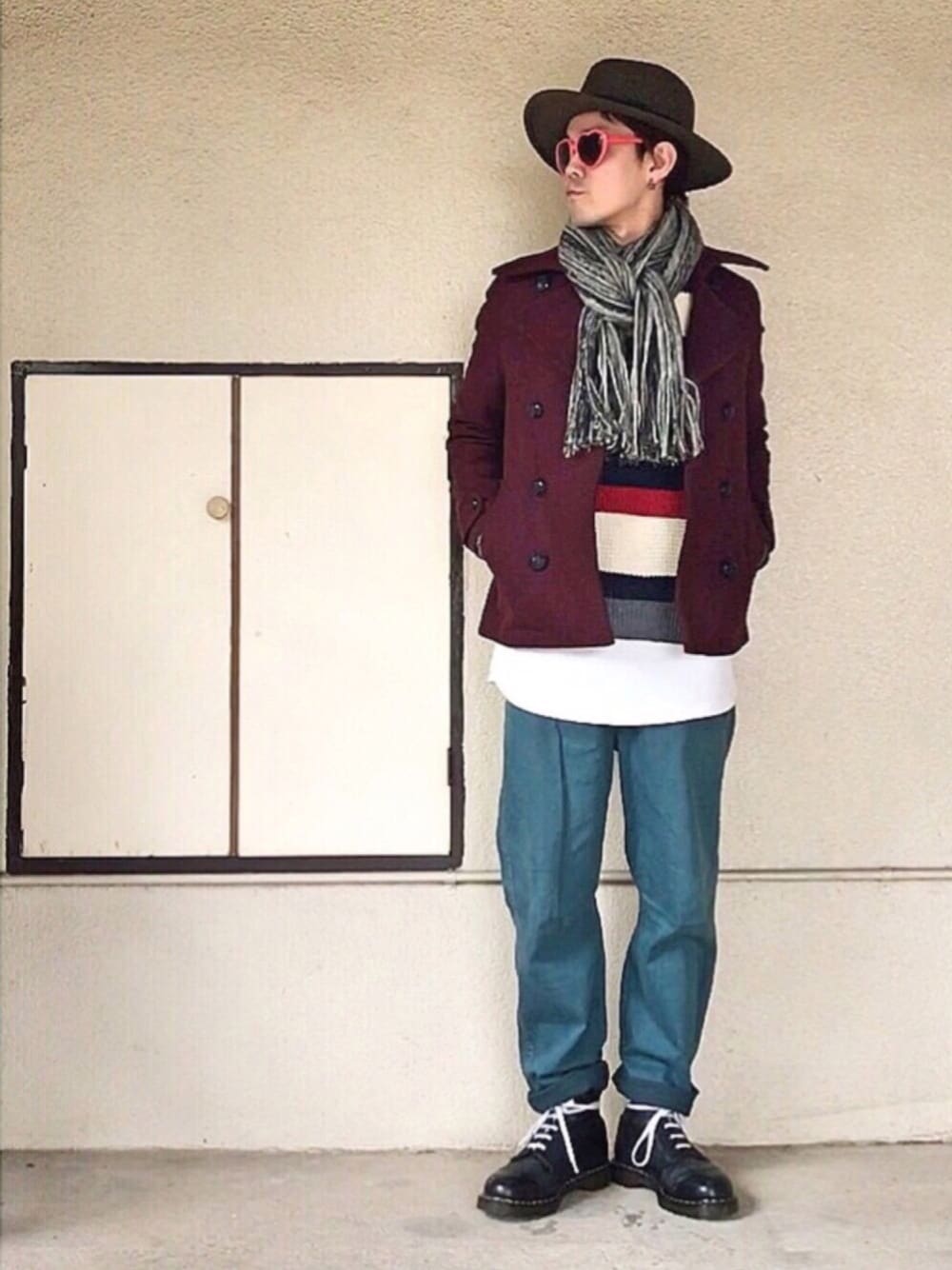 2016/12/22(木)☔️今日のコーデ ハーイ😆✋️ 見に来てくれてどうもありがとうございます〜🎵 今日は寝落ちの前に😂✋️✨ サマル(🈂🙆♂️)です😆✌️ 日付変わって2016年12月23日(金)‼️ とうとう始まりました〜❣️ トモちん主催のXmasぱーちーWEAR2016🎅🏼🎄✨ クリスマスっぽく緑赤白を使ってのコーデ‼️ Pコートのワインレッドにボーダーセーターの赤‼️ ブルーグリーンのパンツとカーキつば広ハットで緑‼️ ボーダーセーターの白とカットソーの白、靴紐にも白‼️ ぱーちーなので❤️のサングラス〜😍← 今日はこんな感じ〜☝️ 今年最後のお楽しみ〜🎅🎄😍✨ みなさん一緒に楽しみましょう〜😆👍✨ それではまた明日〜😆👋