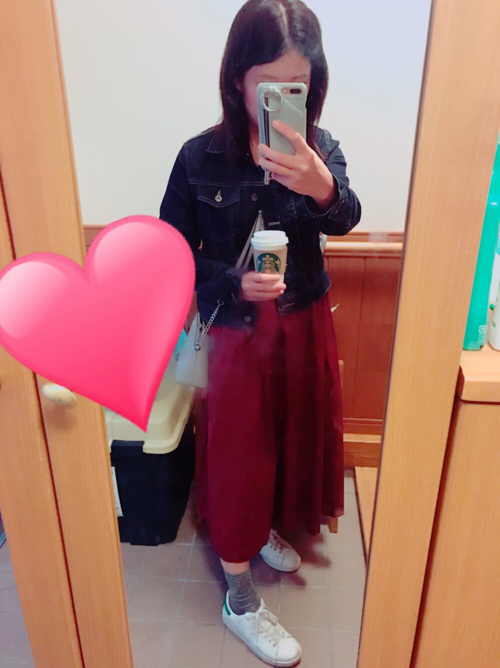 お出かけコーデ(o^∀^o) ボルドーのスカートで秋らしさを出してます!