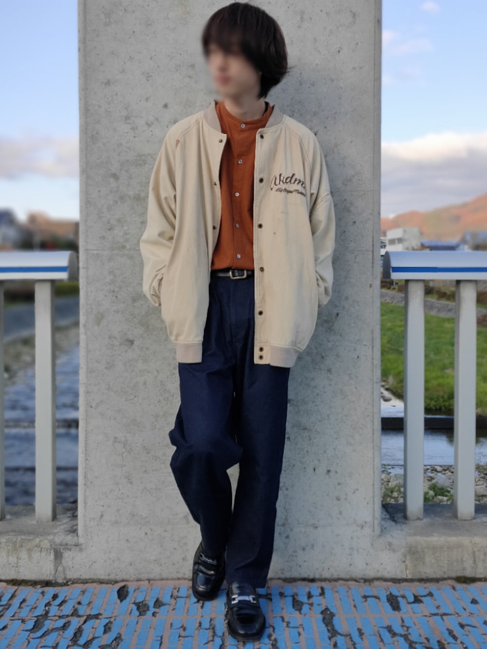 こんばんは〜。さめちゃんです。 みなさん見てくださって、ありがとうございます^^* 今日の主役は特大ブルゾン!! なんとUSサイズでXXLです🇺🇸 高校の時古着屋で買って以来、未だにレギュラーで活躍しています。 気をつけたのはシルエットのバランス! 大きいトップスに細身のパンツも悪くないけど、今回はゆるめのテーパードパンツで合わせてみましたᕙ( ˙꒳˙ )ᕗ 小物を黒で統一するとコーディネートがしまって見えるのでオススメです🦈 これからも日記替わりに投稿していけたらと思うので、良かったらフォローの方お願い致しますm(*_ _)m Jacket: XXL(US表記) Shirts: M Bottoms: 28 Belt: 34 Shoes: 25