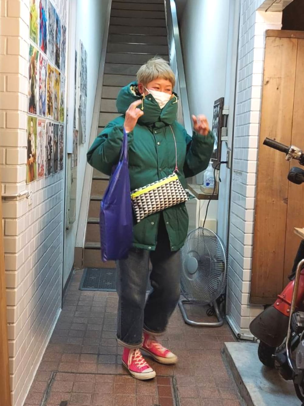 髪色明るくしてピンクコンバース🤟