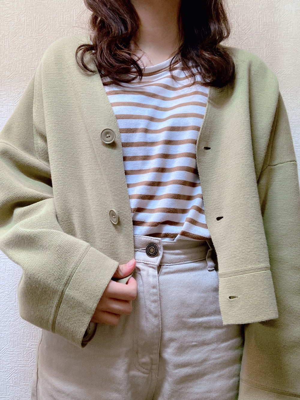 SNSでバズっていたミラノVネックカーディガンをゲットしました🤍 色はピスタチオカラー。春らしくて、ショート丈だからバランスも良くなるからお気に入りです💓 洗濯すると少ししわになるからよく伸ばして干すことをおすすめします☁️