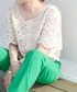 かぎ針のトップス完全に一目惚れ🤍 インナーはGUで買った丈短めのブラトップ☺️ 襟元が広いし、インナーが透けるので見えてもいいものを着るのがおすすめ!