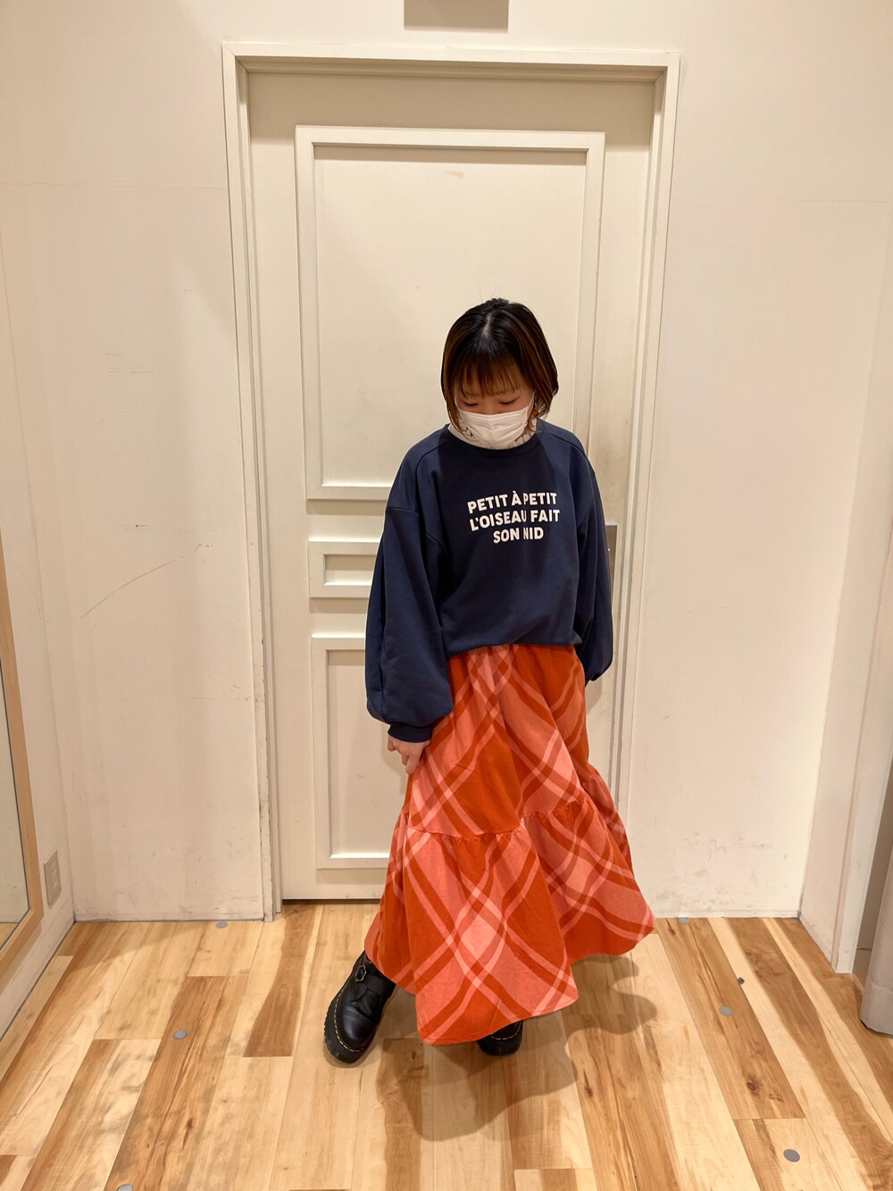 ❀ 𓂃𓈒𓏸 early spring ❀ 𓂃𓈒𓏸 ✿ゆったりとしたロゴスウェットにチェックのスカートを合わせてカジュアルスタイル ○ロゴスウェットは肩が落ちていて、袖もぽわんとしているので華奢に見せてくれます¨̮ 丈感もおしりが隠れるくらいまであるので、パンツスタイルでもスカートでも🙆🏻♀️ ○スカートは裾がティアードになっていてスタイル良く見えます🌟 歩く度裾がヒラっとするので女性らしい印象に○ ━━━━━━━━━━━━━━━ 春物もお安くなっておりますので、皆様の御来店お待ちしております☺️