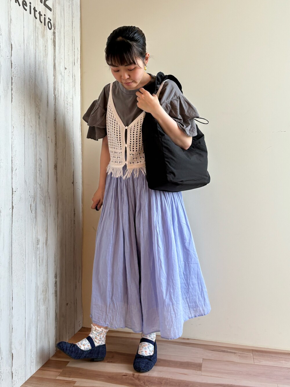 🩵ご覧頂きありがとうございます🪼 ━━━━━━━━━━━━━━━ 👗出勤コーデ👗 ✿インド綿を使ったスカーチョは涼しくて毎年買ってます🤭 色味も私の大好きなブルー💙 ほんとに涼しいので1度ご試着してみて頂きたい1着です😌 ✿フリルTはピグメント加工がされていて古着風の色合いがとっても可愛いです🌼 肩のフリルは気になる二の腕を隠してくれるので安心です👏 1枚だけじゃ物足りなさを感じたのでビスチェを重ねました! ━━━━━━━━━━━━━━━ 夏物アイテムも大変お買い求め安くなっております🏖☀️ 今から使える半袖アイテムも沢山入荷中です🍑 皆様のご来店心よりお待ちしております😉