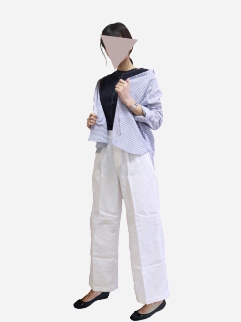 ご覧いただきありがとうございます🙏 🌿|ゆるコーデ ネイビーのノースリーブは 白色のステッチに一目惚れして購入しました☺️ 白色のボトムスと相性ばっちりです🙆♀️ 首元が少し詰まったデザインなので、カジュアル過ぎず上品さもプラスされます😌 ストライプのシャツは すごく柔らかい素材で着心地◎ 後ろの丈が長めでシルエットも◎ 大好きな1枚です😘