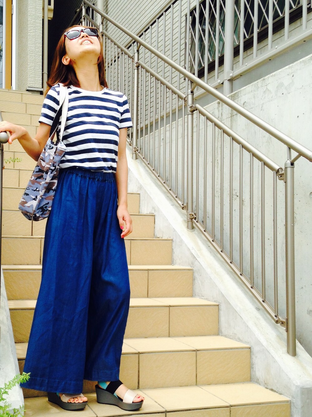 昨夜の大雨から日差しが眩しいくらい天気に回復しましたね。 新しく買ったサンダルの出番だー! ロング丈のパンツやスカートって背の高くない私にとっては下に擦りそうでギリギリなので ヒールは欲しいけど、子どもいるし歩きやすいの探してたんです。 これは、正解でした〜。歩きやすかった。 このパンツといい、今年は大活躍しそうです!
