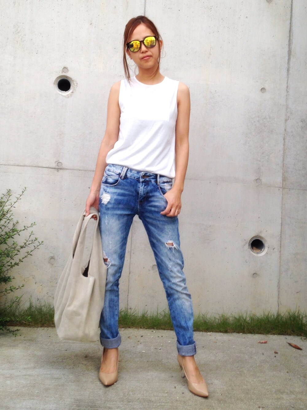 さえのタンクトップ「タックエンボスBOXタンク」を使ったコーディネート