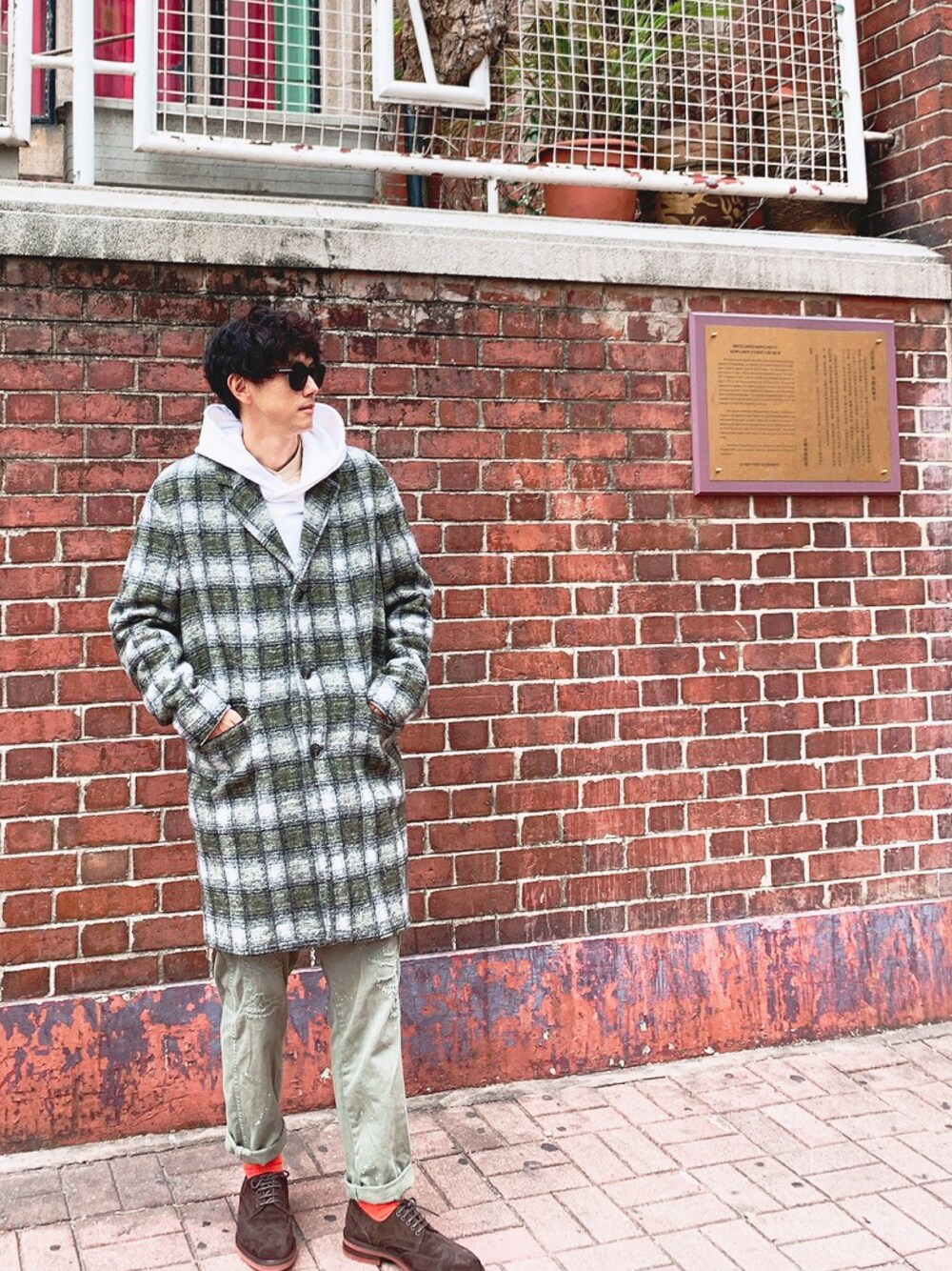 コートが着れるくらい寒いのは嬉しい件w(ずっと昼間はTシャツでもイケるくらいな気温だった💦) ZARAのカーキのチェックコートにUNITED TOKYOのホワイトパーカー、 靴下でオレンジ🍊を足して、靴はこの前アウトレットで購入したフェラガモで年相応感をプラス➕ インナーにUNITEDTOKYOのベージュのバンドカラーシャツをレイヤードしてるけど見えないねw