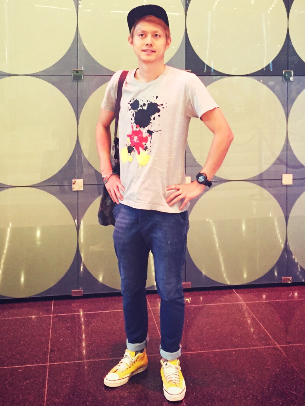湾仔のベビーエキスポにお出掛け! 昨日のお酒が抜けずに若干シンドイぜw 今日はだいぶカジュアルにキャップにミッキーTにデニムスウェットにスニーカーコーデ! 若作りコーデw