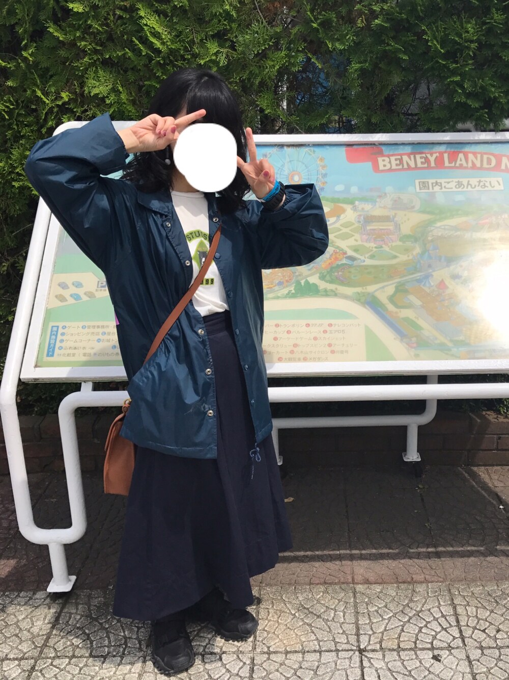 今だと暑い格好。 先月くらいの〜〜 背景はベニーランド☺笑