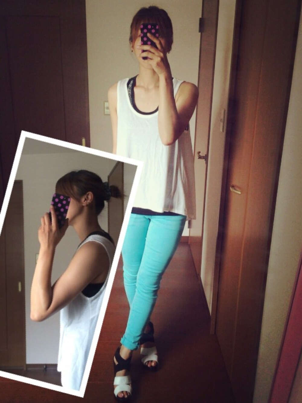 暑い〜 お団子ヘアー… 髪短いからてっぺんで出来んかった… 真後ろでやったらおばちゃんみたーい(´・_・`) ま、いいかぁ(´-ε-`;) 髪のばそーかなぁ(笑) でもショートは楽なんだ!! ショート万歳(笑)