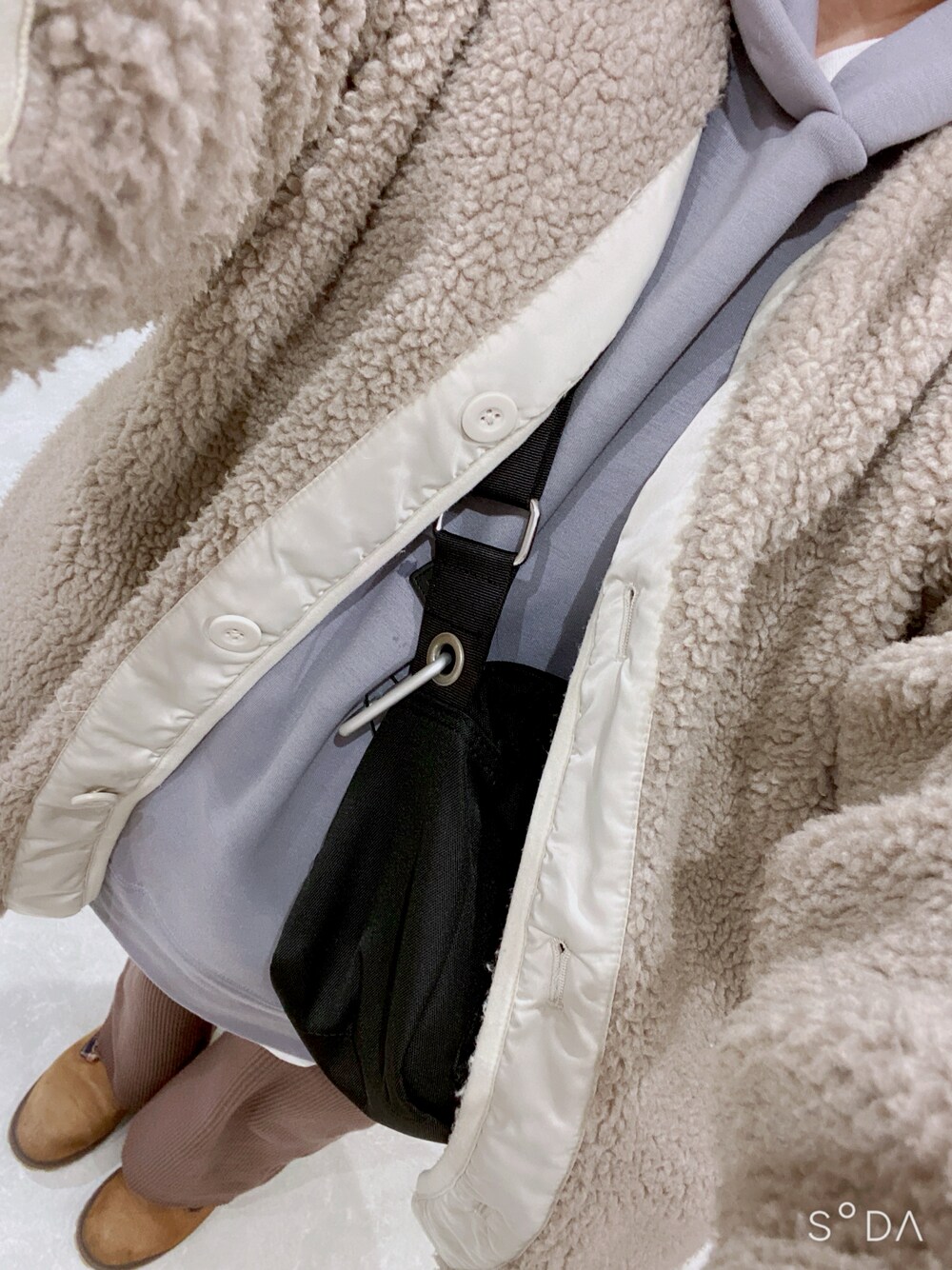 パーカーでラフなスタイル😄ボアジャケットで見た目も暖かく⛄️