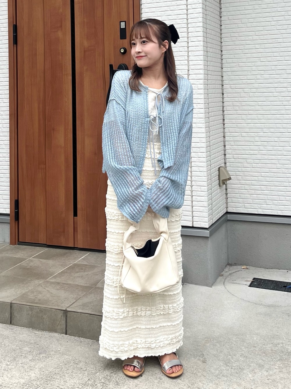 . . ˗ˏˋ お出かけcode ˎˊ˗ まだ少し肌寒い時にさっと羽織れる カスタネのトップス♡ 差し色の水色が可愛すぎる🎀ˎˊ˗ このスカートも生地がしっかりしてて 思ったより動きやすかった!! おすすめ🫶🏻 Instagram : sana_usukura_cote 良かったら見てください🫶🏻💭