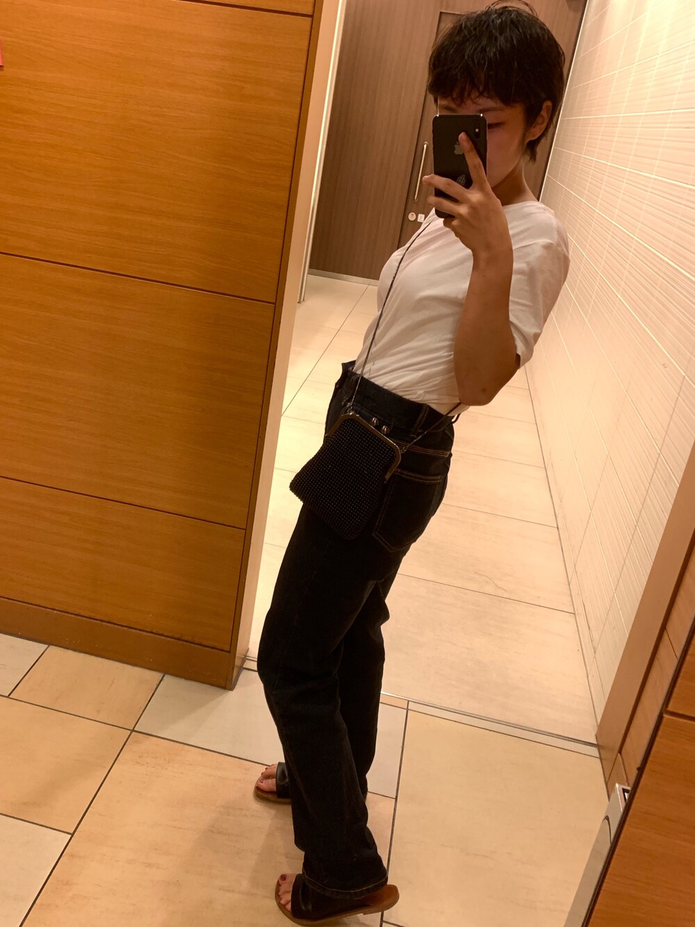 小さながま口ショルダーは本当に可愛い。 ozocのハイウェストデニムはストレッチもきいてて足がが長く見えるからオススメ👏🏻