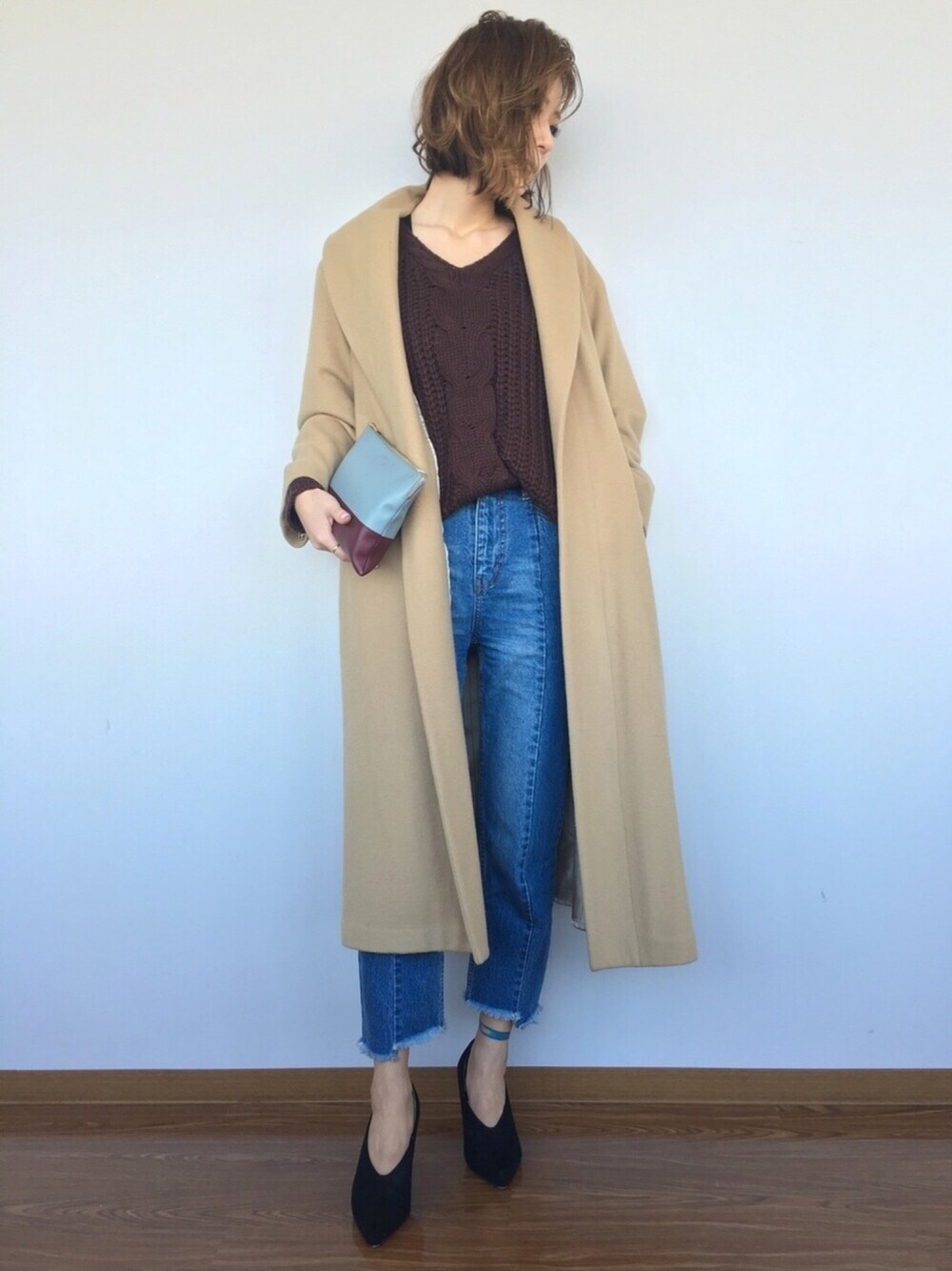 センターシームのデニムに、Vカットパンプス。 レトロな雰囲気が今っぽくて好きです。