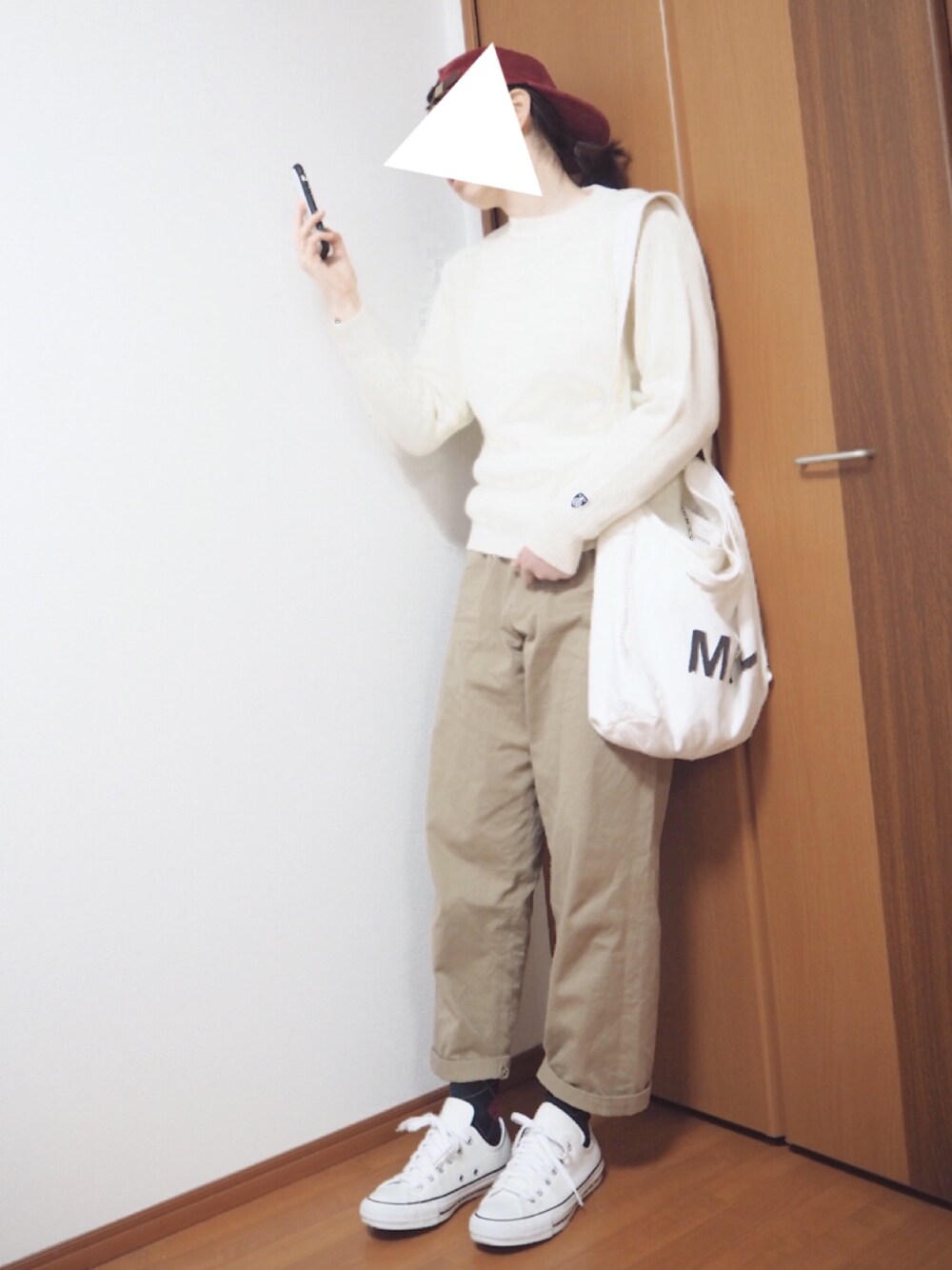 _ いつも いいね save ありがとうございます 昨日お迎えしたニットを着たくて… このニットならどんなパンツでも 合いそうすぎてわくわくします 上にはMHL.で衝動買いした ダッフルコートを キャップ supreme パンツ yaeca 靴下 無印良品 _