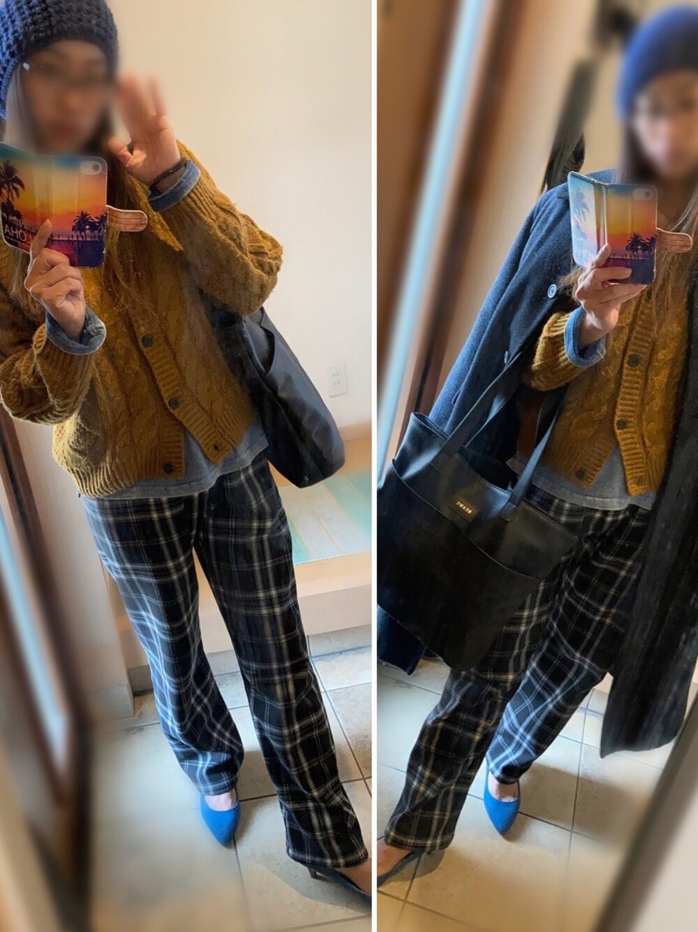 インテリ風コーデ♡ 大人カジュアル!! ちょっと学生っぽくなってしまいました。笑 ブラウン×ブルー系コーデ♡