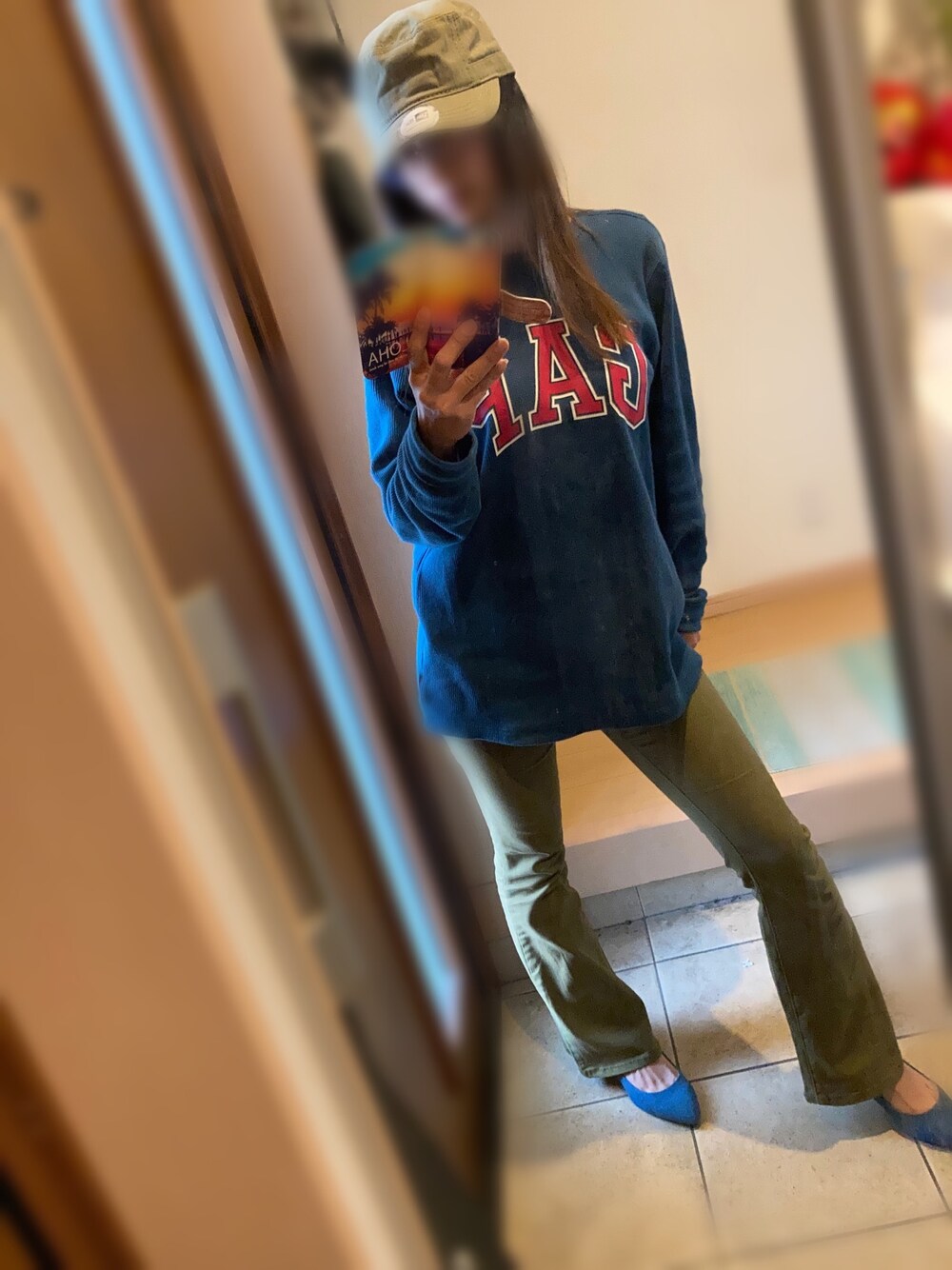ちょっぴりアーミーコーデ♡ たまには、辛口なコーデしたくなる。 カラーベルボトム、形キレイだわ〜✨✨✨✨