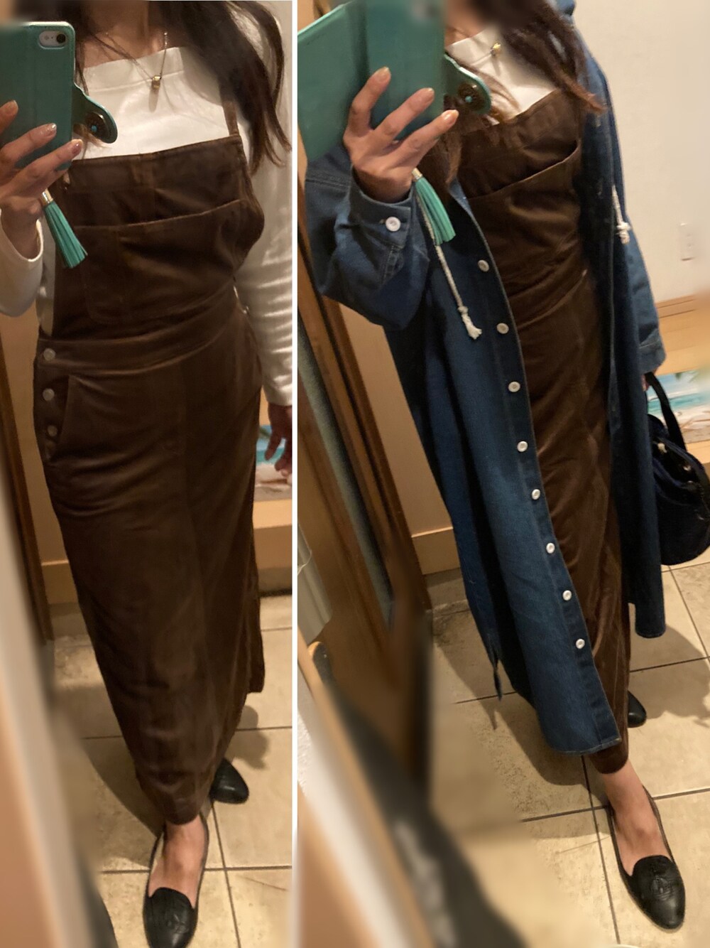 今日は、お友達とランチ♡ ベロア素材のサロペットスカートをモノトーンコーデで仕上げてます♡ シンプルなヴィヴィアンのシューズで、ちょっと大人テイスト♡