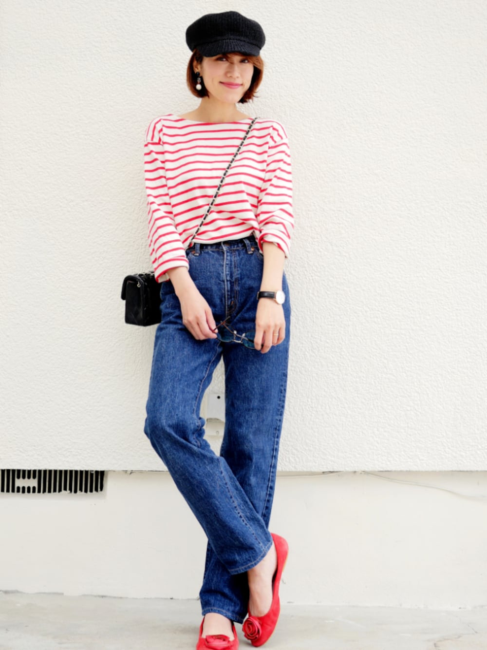 UVカットメガネを掛けたかったけど、 掛けたら絶対ウォーリーって言われるから 手に持ってます👓 でも結局掛けましたけど(笑) チェーンバッグと赤いバレエシューズで レディ感をプラスして、 せめてもの抵抗…😂👓 👓…Zoff 👲…amorous insens 👕…DHOLIC 👖…GLHEART(古着) 👜…plain clothing 👠…passage mignon ピアス…Me%