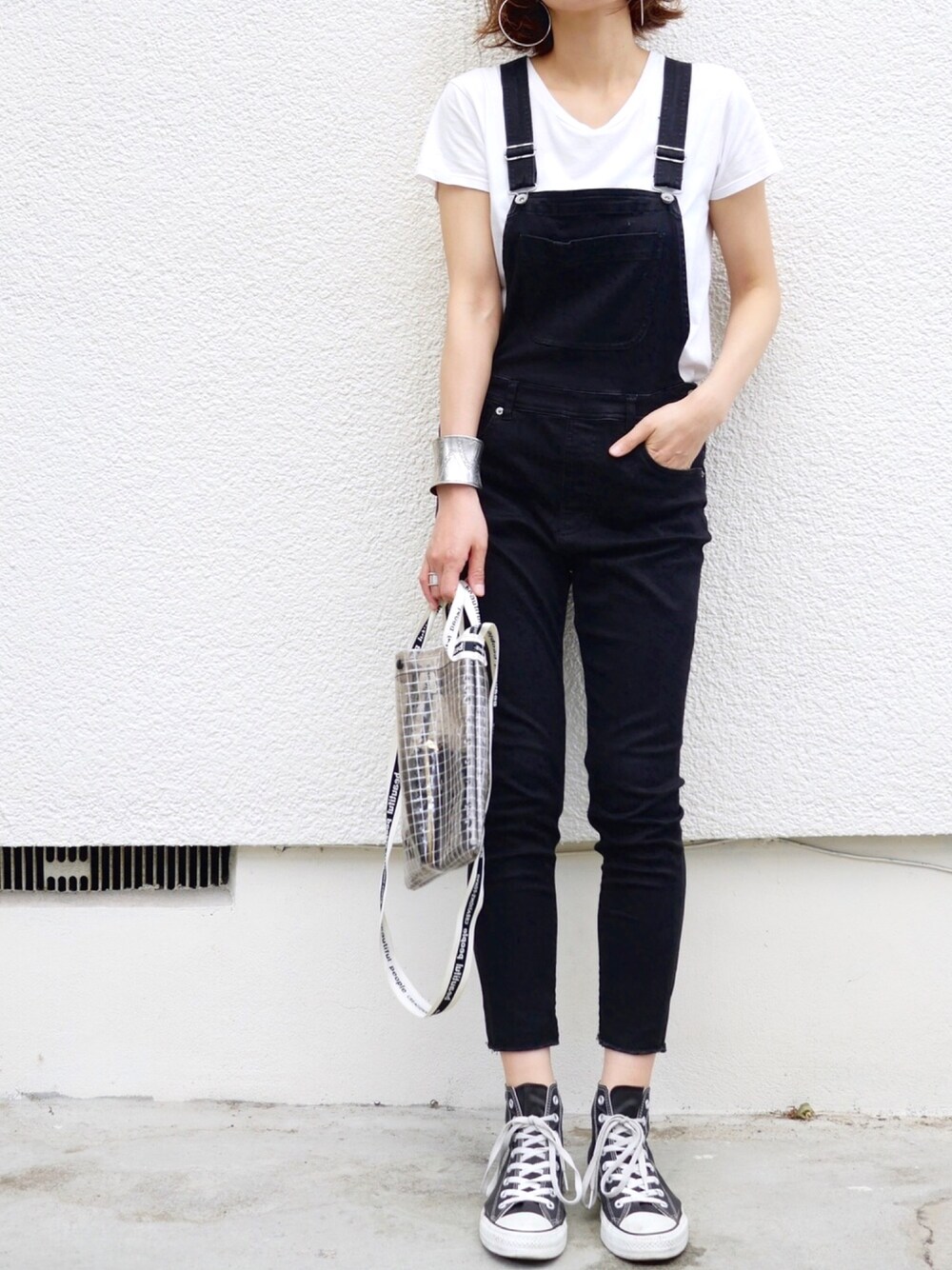 プチプラ楽チンコーデ♨️ Tシャツ…HANES サロペット…JEANASIS バッグ…beautiful people シューズ…converse