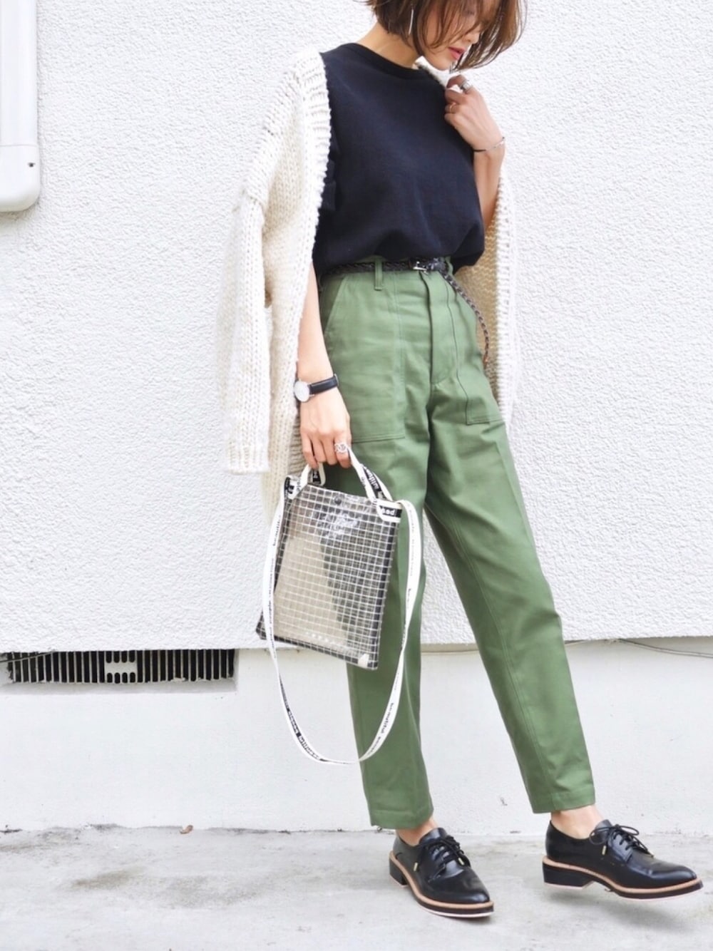 サーマルT…ADAM ET ROPE' ベイカーパンツ…THE SHINZONE カーディガン…TODAYFUL シューズ…ZARA バッグ…beautiful people
