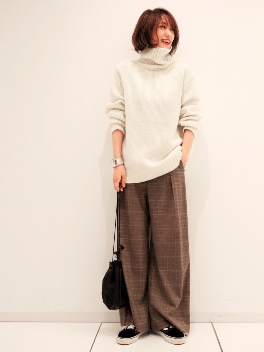 上下GU❤️ タートルネックニットはメンズ。 サイズはLです☺︎ 巾着バッグ…THE CASE シューズ…VANS