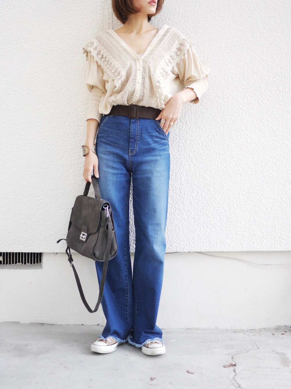 金子三記(miki)のデニムパンツ「【WEARISTA miki コラボ】裾フリンジワイドデニム」を使ったコーディネート