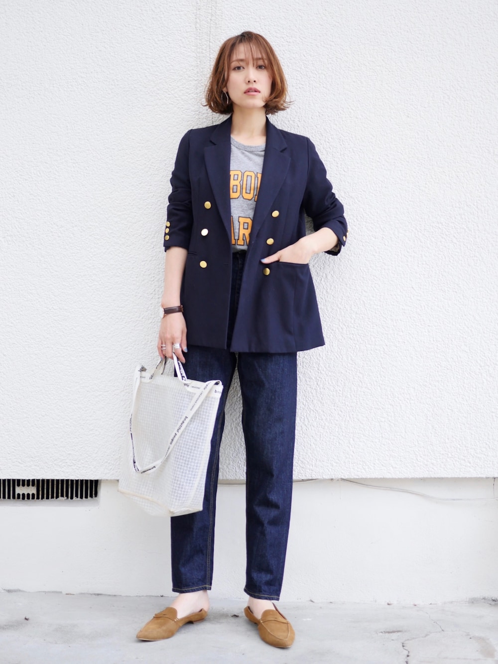 JKにロゴT☺︎ ロゴT…rxmance JK…mysty woman デニムパンツ…BLACK BY MOUSSY クリアバッグ…beautiful people ローファー…ZARA
