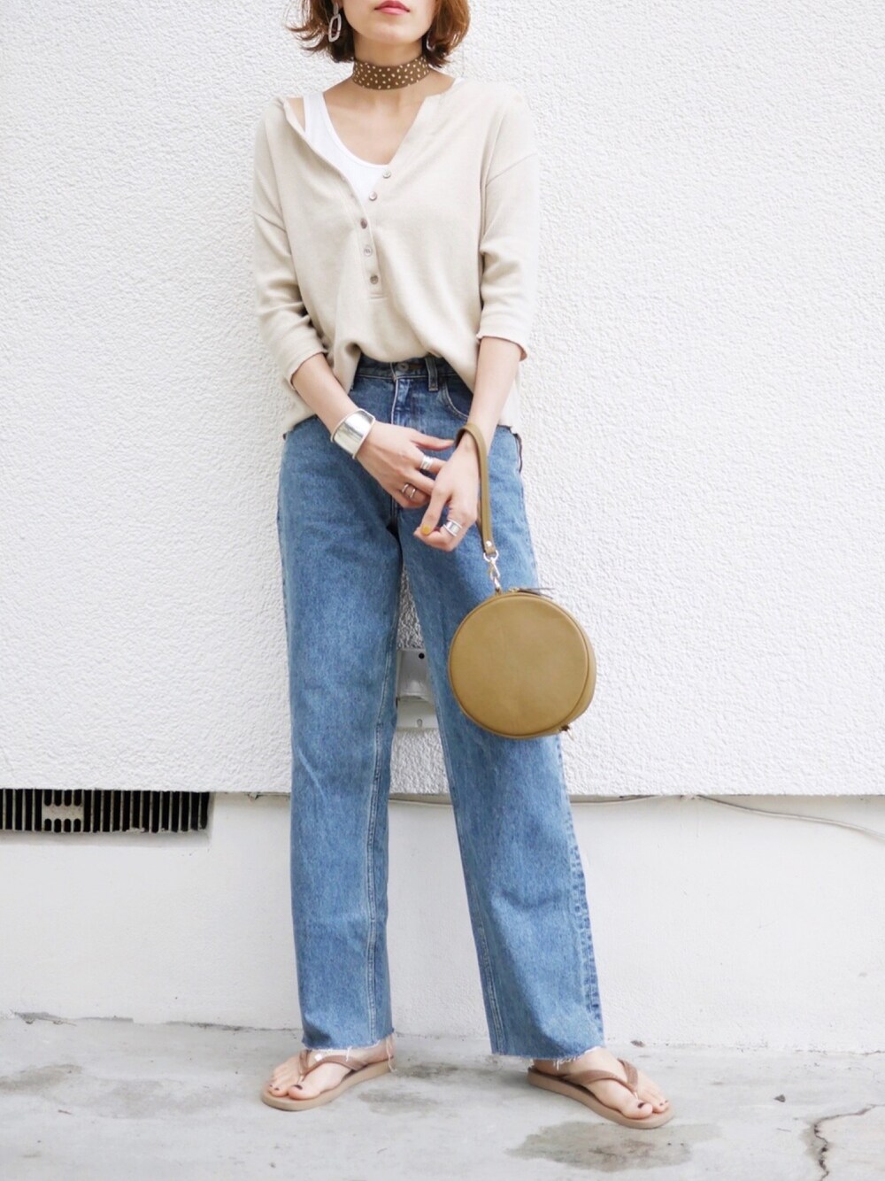 カジュアル💛 🎽、👜…JEANASIS 👚…GALLARDAGALANTE 👖、🧣…todayful 👡…havaianas