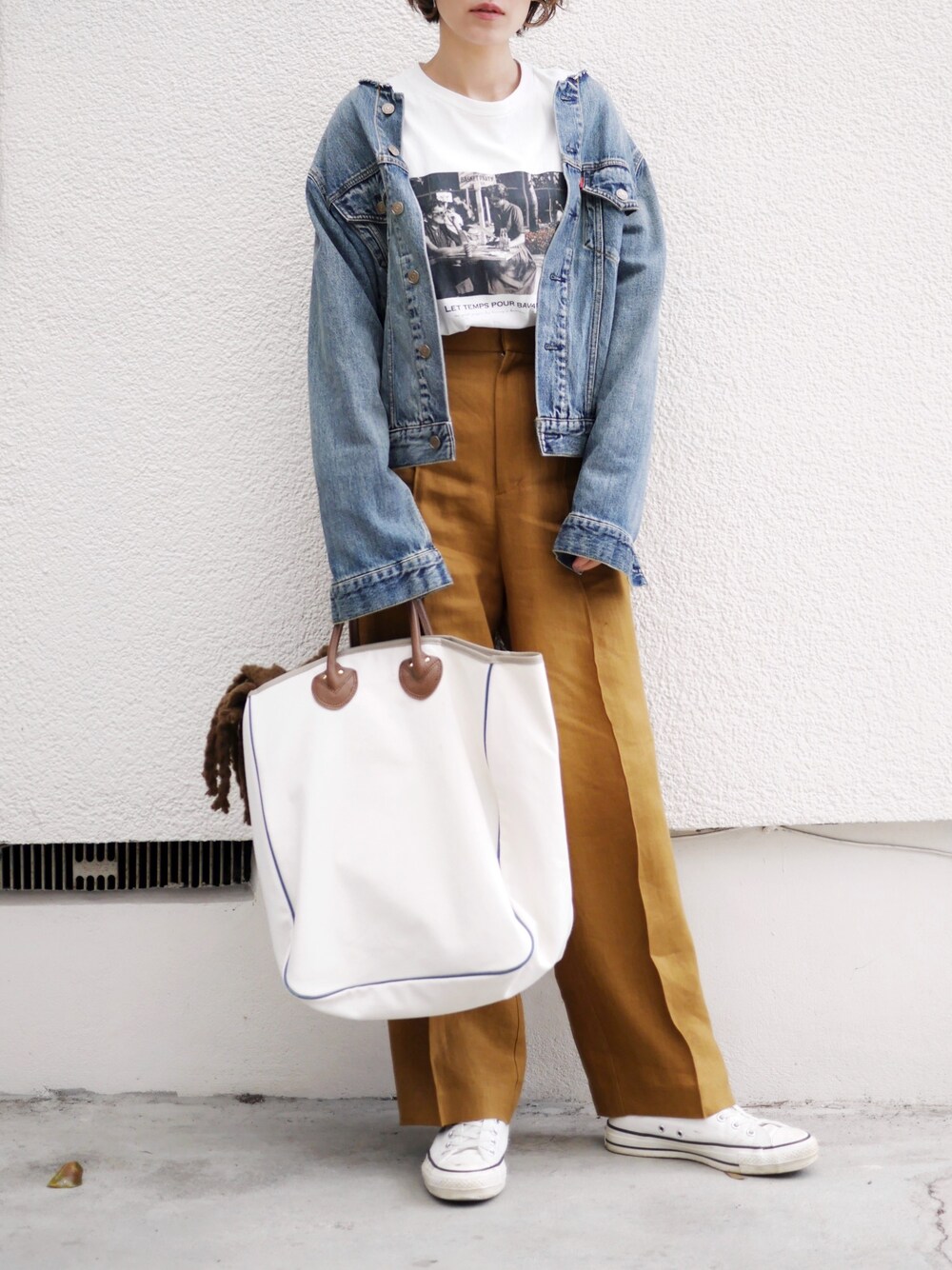 すごいカジュアル🤡 ungridのノーカラーGジャンずっと愛用してます❤️ 👚…ottilie JK…ungrid 👖…liyoca 👜…Young and Olsen 👟…converse