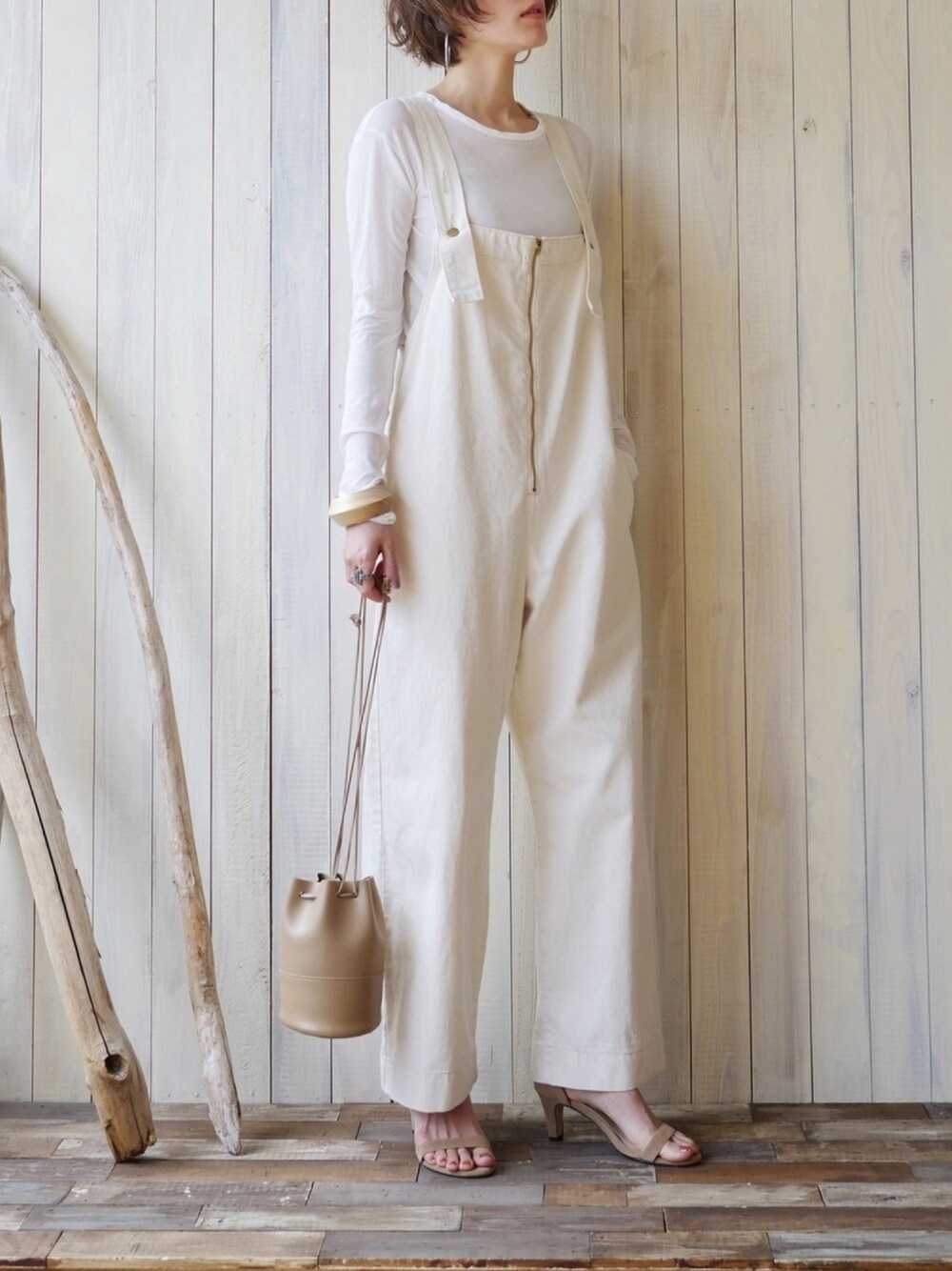 シアーTシャツとサロペットのホワイトコーデ🤍 👚…estnation salopette…SLOBE IENA 👜…canal jean 👡…menue bangle…Adam et rope