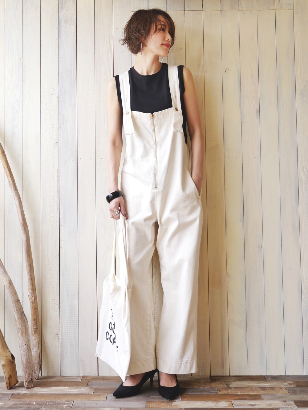 金子三記(miki)のタンクトップ「【サスティナブルウエア】スリーブレス Tee(2枚パック)[BRING Material ]」を使ったコーディネート
