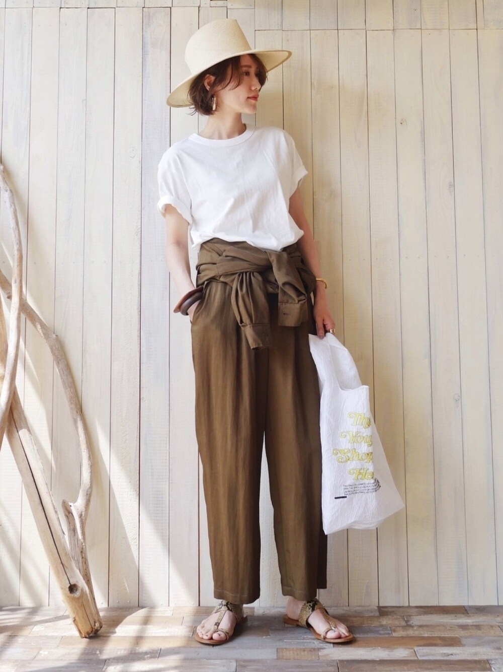 オールインワンを腰で結んで🎀 この着方なら長袖でも着られる😊 エコバッグのロゴが刺繍で可愛いの💓 👚…UNIQLO U(メンズ) all-in-one…PABLIC TOKYO 👜…journal standard relume 👡…ZARA 👒…todayful