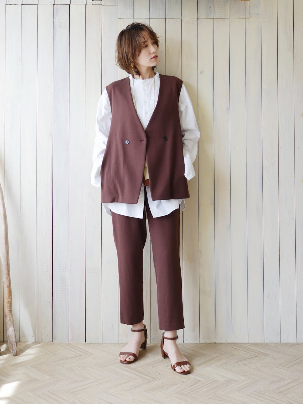 金子三記(miki)のその他アウター「F by ROSSO リネンライクノーカラージレ」を使ったコーディネート