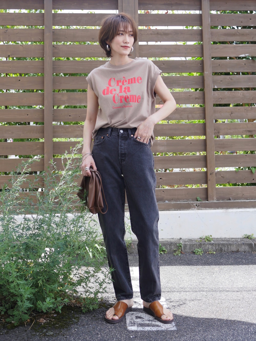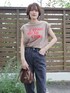金子三記(miki)のTシャツ/カットソー「ロゴプリントフレンチTEE」を使ったコーディネート