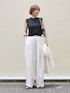 ニットトップスは付かず離れずのほどよいサイズ感で 丈感も程よく短めでインしなくても着られる◎ 脇の開きも広くないのでインナー気にしなくて大丈夫☺️🙌 NAVEのパンツは高身長さんにおすすめ〜❤️🔥 フラットシューズだと引き摺ります ウエストやヒップ周りもゆったりめだからしっかりワイド♡ 裏地付きなのでベージュ系のインナーなら透けませんよ☺️ 👚…f by rosso 👖…NAVE 👜…osoi 👡…oriental traffic 👔…todayful pierce…loungedress