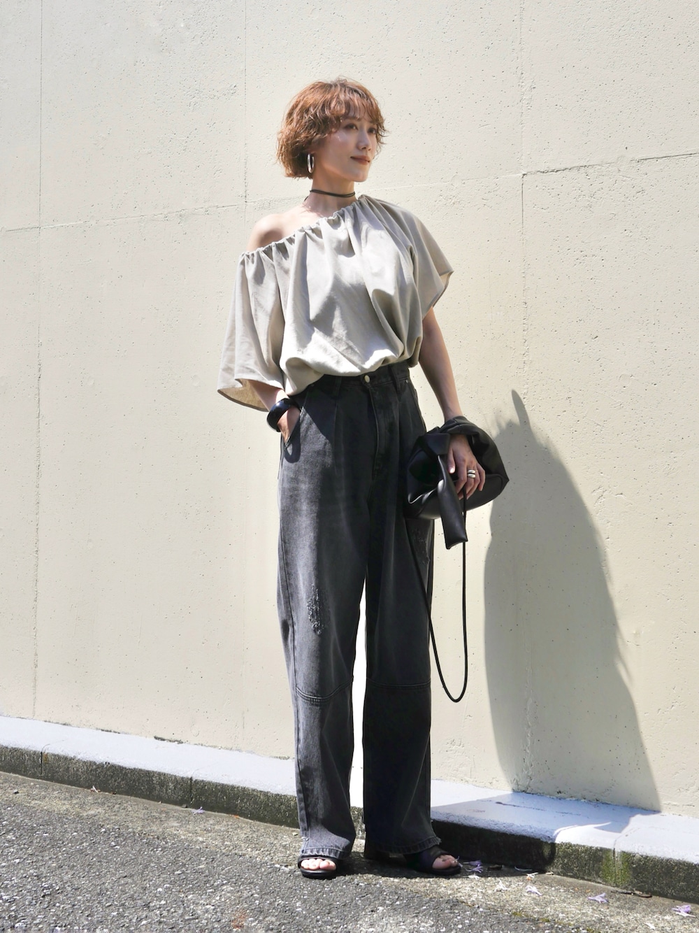 金子三記(miki)のシャツ/ブラウス「リネンオフショルブラウス」を使ったコーディネート