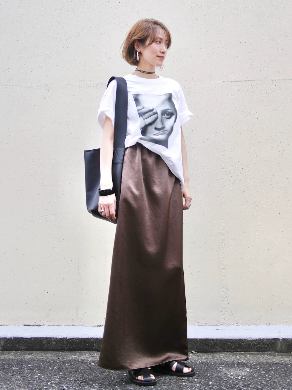 yaeのスカート🤎 前から愛用してるゴールドのスカートよりも ウエストヒップ周り大きめで 長さもちょっと長いです☺️ ウエストゴムが内側に向かって3点でしか留まってない(説明難しい🫨)のがちょっと気にはなるけど… 長いのはとにかく嬉しい🤤 Au BUNNISTERのグルカサンダルも ベルト外さなくても着脱できて楽ちん✌︎ 👚…adam et rope skirt…yae 👜…topkapi efole 🩴…Au BUNNISTER pierce…loungedress ring…mou,9ban choker…todayful