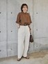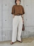stylemixerのシアーシャツ着心地良いし透け感も程よいし涼しいしオススメ! 秋カラーでこれからの季節長く使えますよ♡ IENAのパンツも肌触り良くて涼しくて◎ 透け感あるのでインナーはベージュ系が良いです 身長170でフラットシューズなら丈ギリギリOK セールでお安くなってるしこちらもオススメです🥰 👔…stylemixer 👖…IENA 👜…maiso special 🩴…lowrys farm pierce,bangle,ring…mou belt…UNIQLO