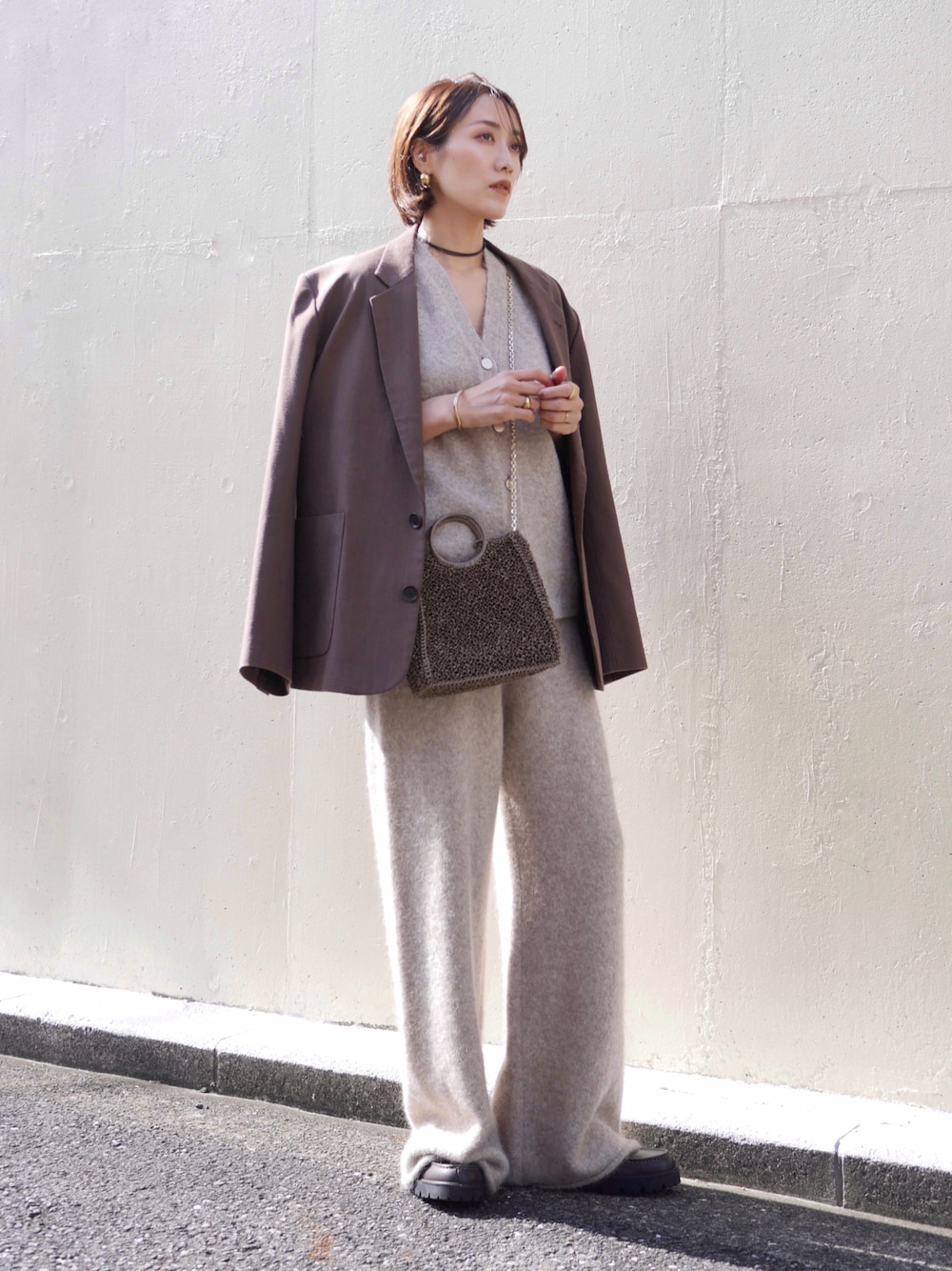 marmorsのニットベストとニットパンツはセットアップ♡ 毛足が長めでフワフワ〜✨ ゴールドのボタンが大人っぽくて可愛い☺️ 🦺👖…marmors JK,choker,bangle…todayful 👞…HARUTA 👜…anteprima ring…cene pierce…9ban