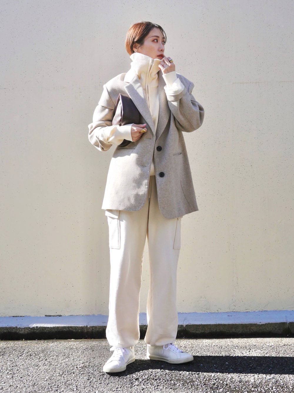 金子三記(miki)のテーラードジャケット「ボンディングオーバージャケットコート」を使ったコーディネート