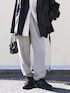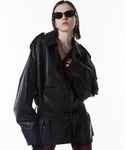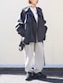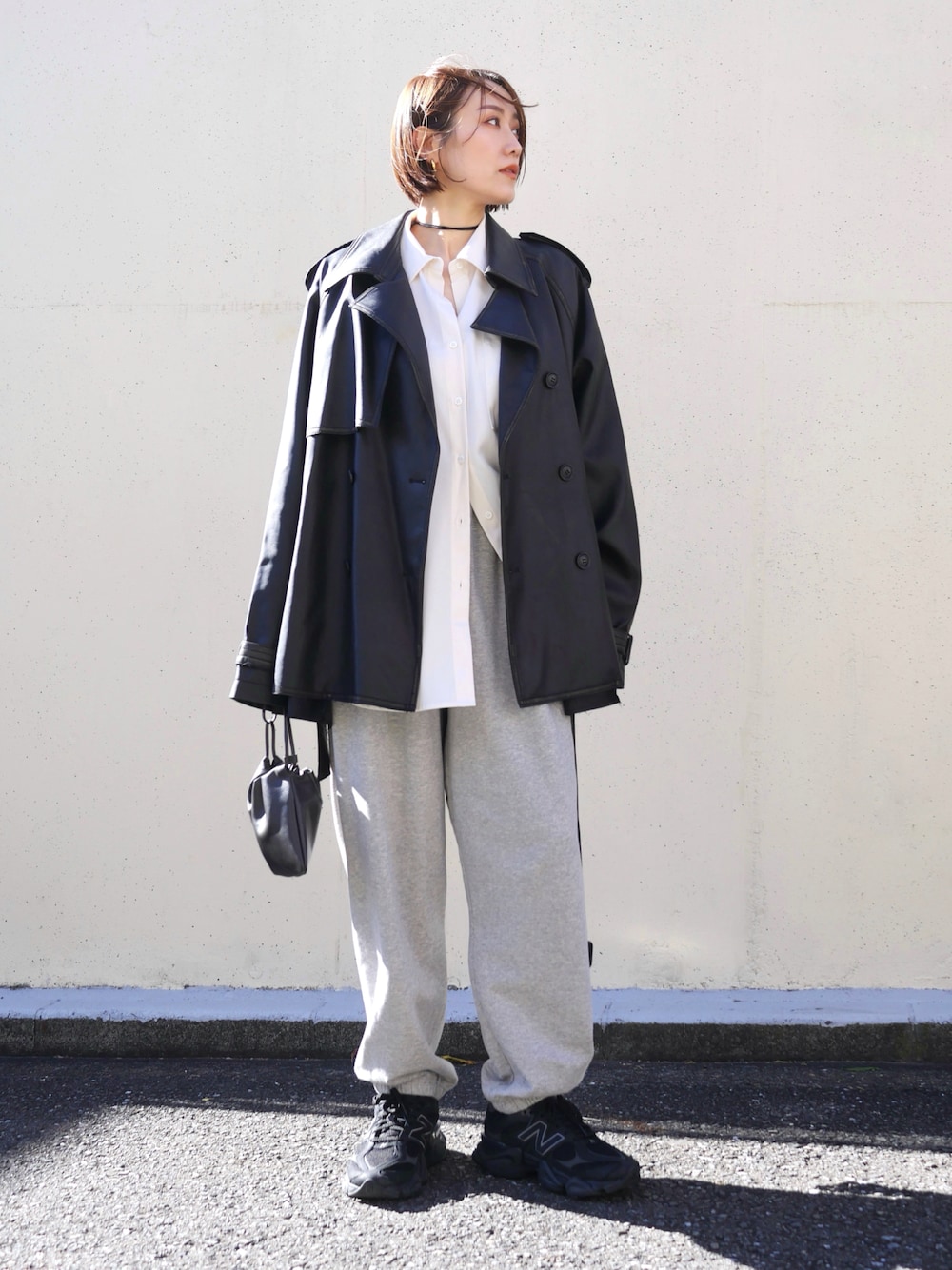 スウェット×スニーカーのカジュアルスタイルにサテンシャツとレザージャケットで大人っぽさを🩶 オーバーサイズのレザージャケットめっちゃオススメ🥰 shirt / AIC JK / jose moon pants / roku bag / canal jean sneaker / new balance pierce / cene choker / goldy