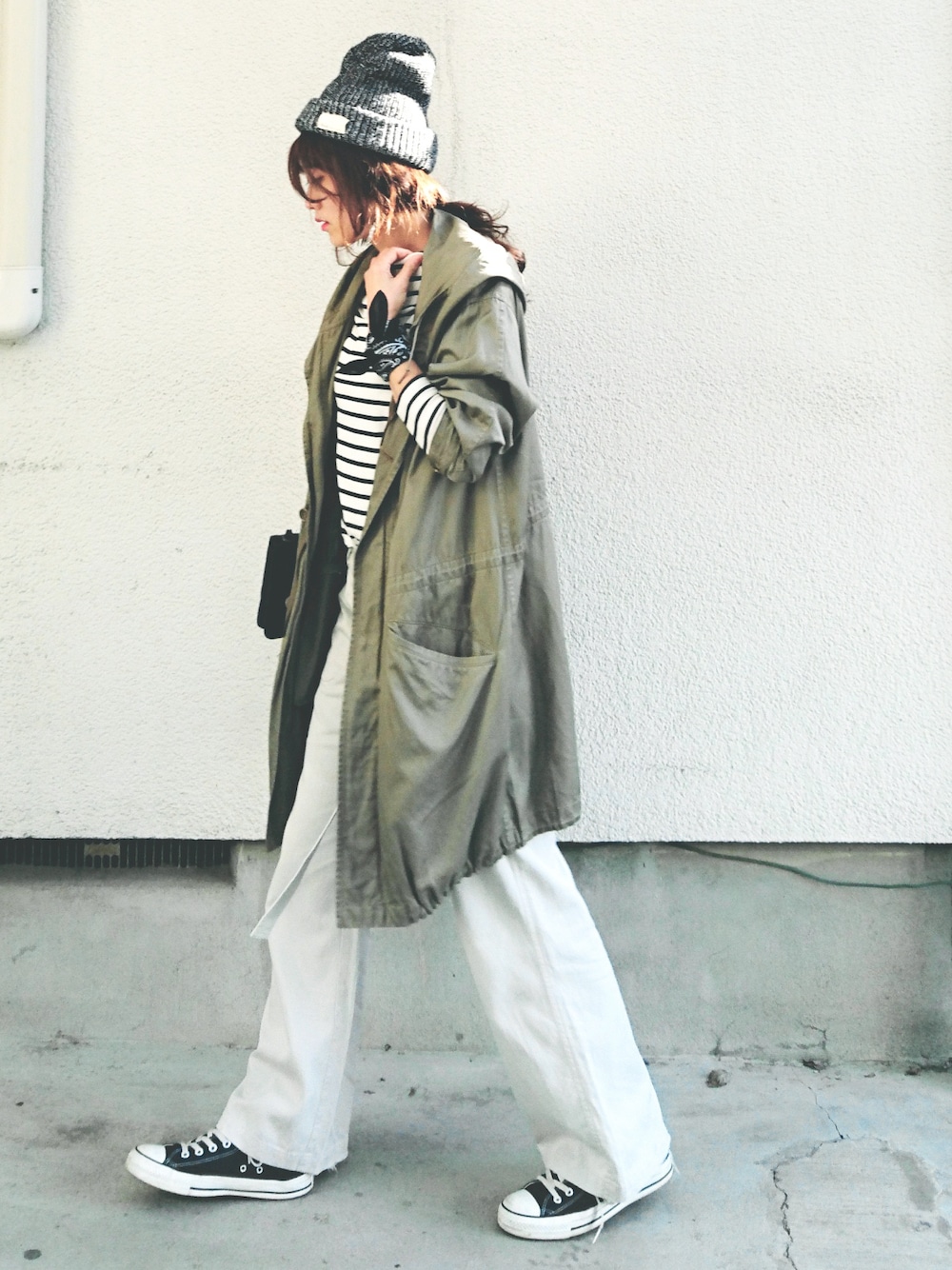 ボーダーで春コーデ☺💓 何年か振りにモッズコートを着ました☆