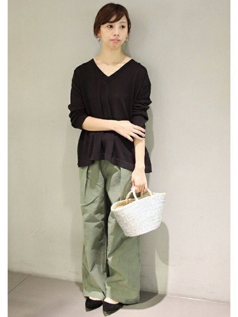 Ryokoのニット/セーター「綿/SILK 深Vネック バックシアープルオーバー◆」を使ったコーディネート
